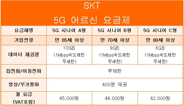2023년 3월부터 만 65세 이상 (주민등록상 1957년 생일이 지난 경우) 어르신들을 위한 시니어 요금제가 나왔습니다.