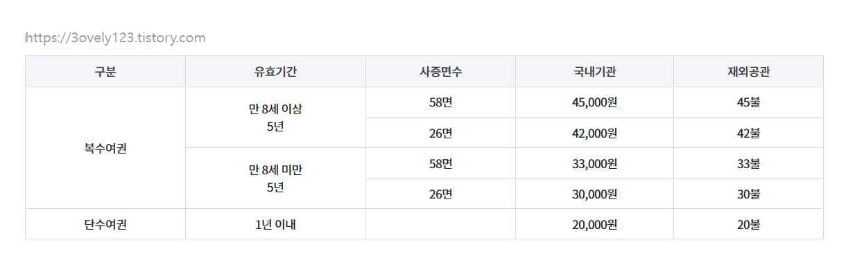 - 발급 여권에 대한 수수료 비용